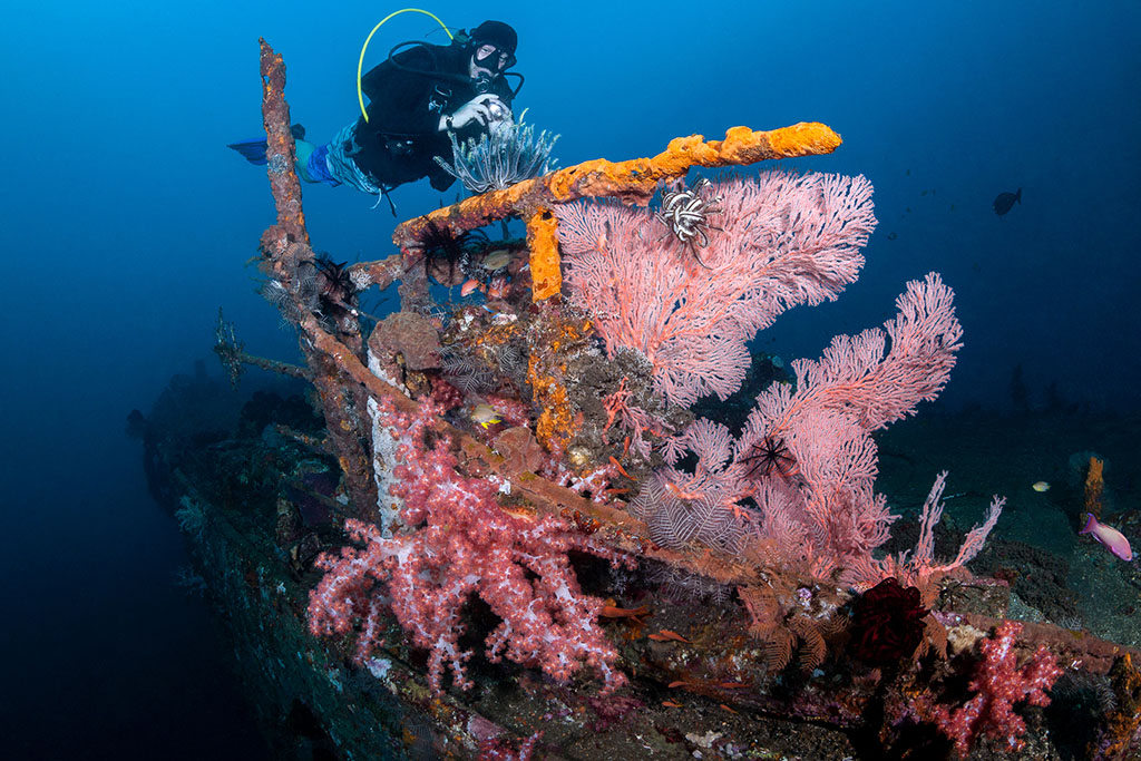 Das Boga Wrack ist Bestandteil unseres Hausriffs und kann von einem unserer Einstiege aus bequem erreicht werden. Das 50 Meter lange Küstenschiff wurde im September 2012 versenkt, um den Korallenb- und Fischbestand zu erweitern. Es befindet sich in einer Tiefe von 16 bis 35 Metern.